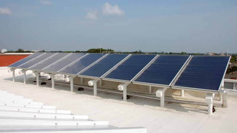 The flat plate solar collector is a type of solar thermal panel w is to transform solar radiation into thermal energy. SANVI Solar flat plate collector water heating are very efficient and are available for Hot water systems from 100 LPH to 30000 LPH systems. The operation of a flat plate collector is based on heat transfer.